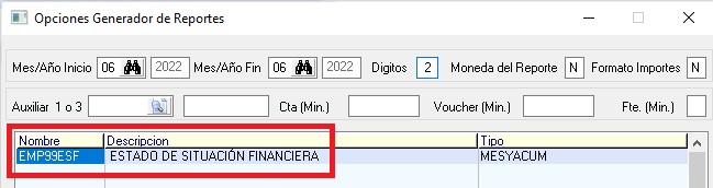 NOTA: Si la cuenta que se está colocando en el reporte no tiene importes en el mes detallado anteriormente el saldo saldrá en blanco, debido a que está colocando una cuenta que no tiene registros en el sistema MC.