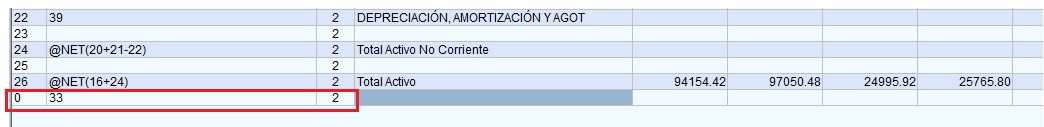 Si el usuario quisiera aumentar más líneas para su reporte deberá ubicarse en la última fila y presionar dos veces la flecha que va “hacia abajo”, y aparecerá una nívea línea que tendrá como número “0”, para guardarlo el usuario en la columna “Nivel “deberá definir el digitó 2 y luego presionar ENTER.