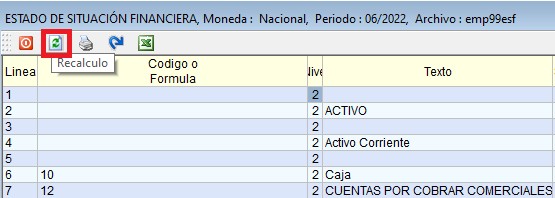 Se deberá presionar el botón “Recalculo” por cada modificación que se realice para que el sistema de forma automática actualice los importes de cada cuenta.