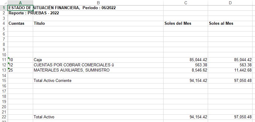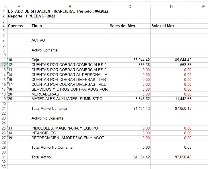 Reporte a Hoja de Excel con Saldo Cero: Este reporte mostrará todos los movimientos de las cuentas que tienen importes y las que no tienen se mostrará con Cero.