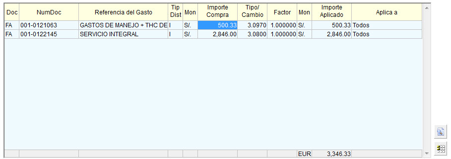 y luego al dar Enter en cualquiera de los documentos asociados, se puede modificar la forma en que se va a distribuir y a que movimientos aplica la distribución del gasto: