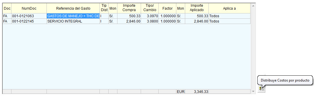 En la parte inferior puede ver un botón para ejecutar la distribución de los costos por producto: