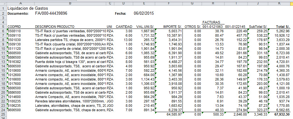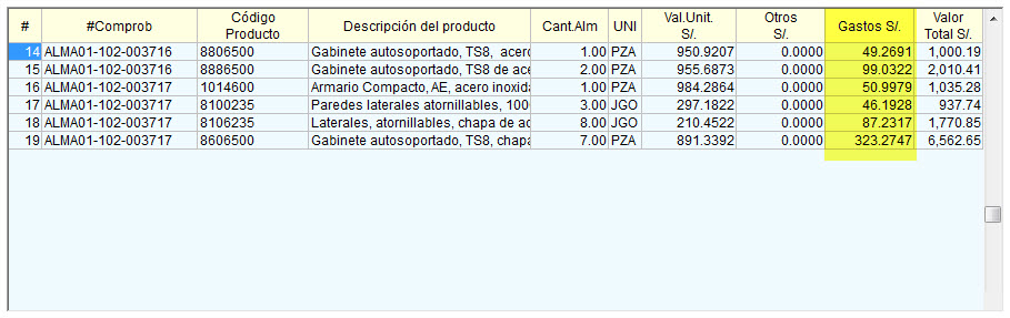 y una vez presionado, se puede volver a la pestaña “Ingresos a Almacén” para ver como quedaron distribuidos los gastos entre los distintos artículos: