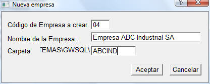 La primera vez que ingresa al sistema le aparecerá una ventana para crear una nueva empresa, indique los valores correspondientes y presione le boton "Crear"