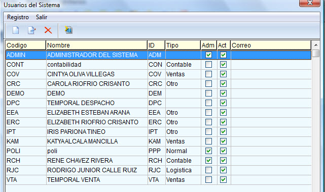 Una vez ingresado su código de usuario y contraseña el usuario podrá hacer uso de la aplicación segun los niveles de acceso que le hayan sido asignados.