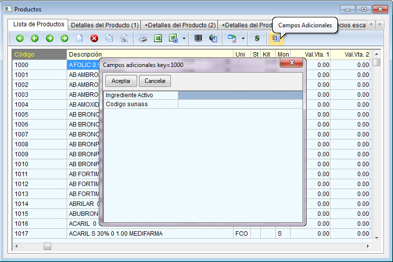 Para el ingreso de informacion en los campos definidos, se usa la opcion "Campos adicionales"