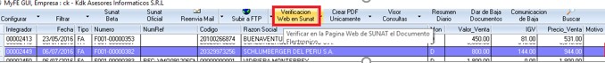 Ir al sistema de facturación electrónica MyFE, posicionarnos en el documento y consultarlo con la opción VERIFICACION WEB EN SUNAT, para que de esta manera se conozca si el documento es válido.