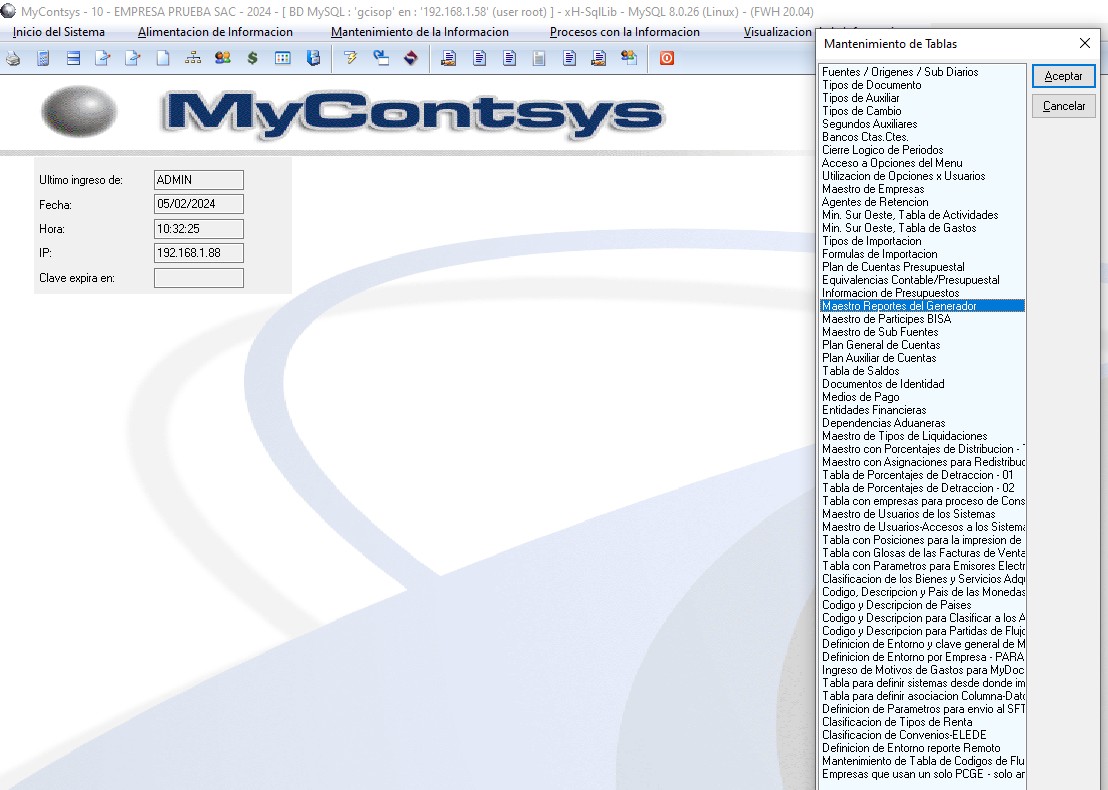 Maestro Reportes del Generador