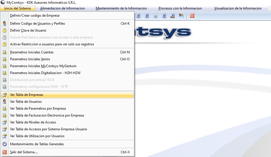 Para ingresar a esta opción se deberá ir al menú Inicio del sistema / Ver Tabla de Empresas.