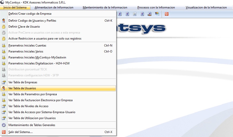 Para ingresar a esta opción se deberá ir al menú Inicio del sistema / Ver Tabla de Usuarios.