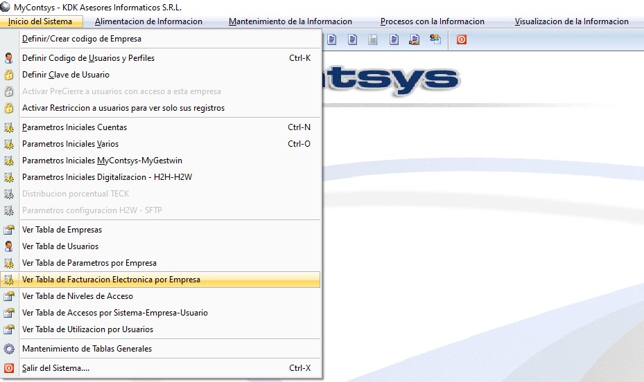 Esta opcion se habilita solo cuando se trabaja con el sistema de facturacion electronica MyFe, el cual se integra con el sistema contable, alimentando la informacion de ventas y cobranzas de forma automatica.
